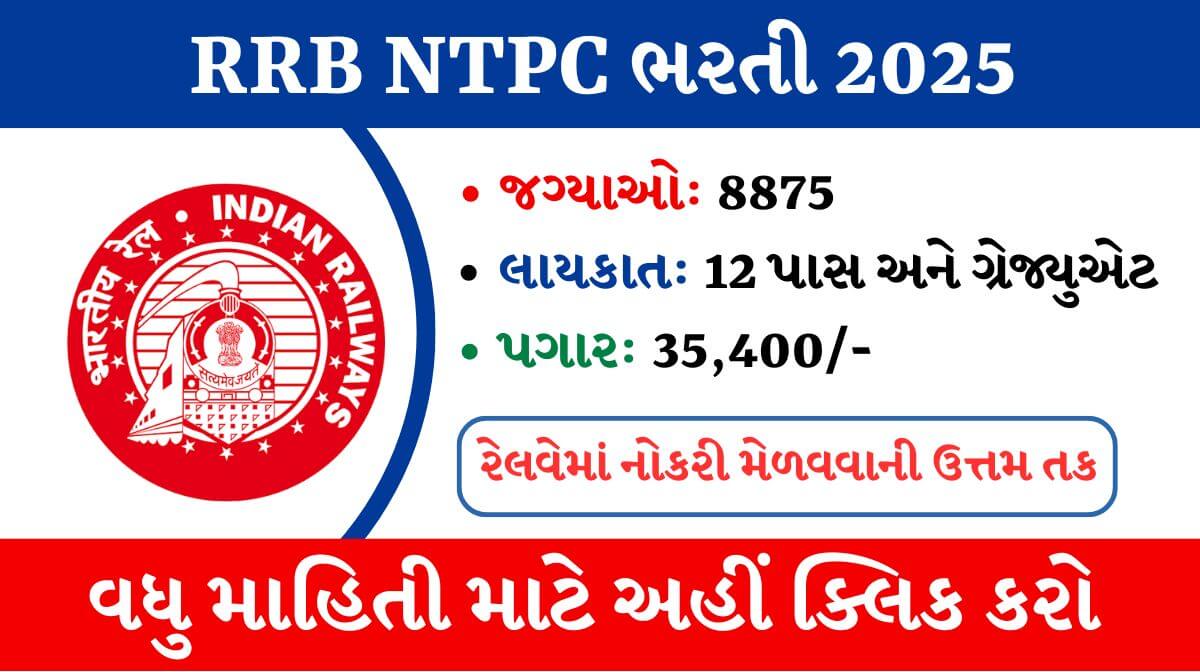 રેલ્વેમાં ધોરણ 12 પાસ અને ગ્રેજ્યુએટ ઉમેદવારો માટે આવી મોટી ભરતી, 8875 જગ્યાઓ – RRB NTPC Bharti 2025