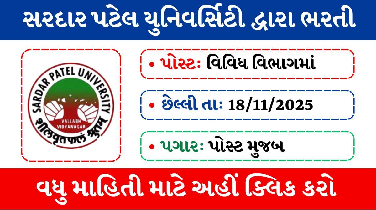 સરદાર પટેલ યુનિવર્સિટી દ્વારા વિવિધ વિભાગો માટે સીધી ભરતી – SPU Bharti 2025
