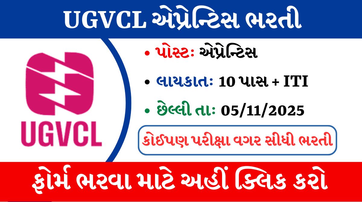 ધોરણ 10 પાસ અને ITI ઉમેદવારો માટે UGVCL દ્વારા એપ્રેન્ટિસ ભરતી – UGVCL Apprentice Bharti 2025