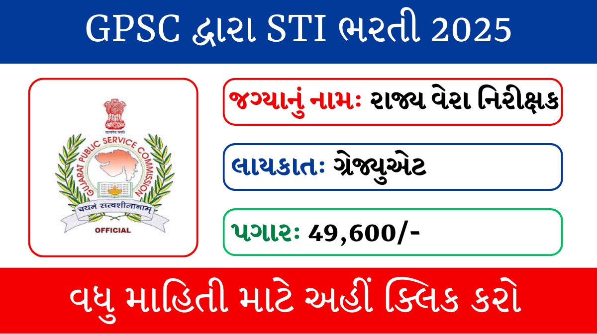 GPSC દ્વારા રાજ્ય વેરા નિરીક્ષક ભરતી, પગાર 49,600 – STI Bharti 2025
